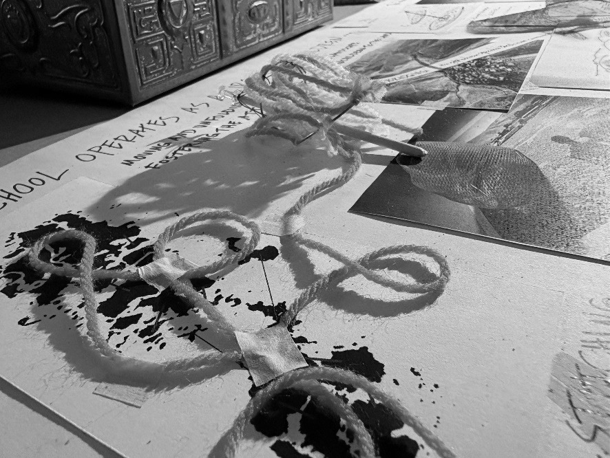 The dispossessed children, in this sense, claim ownership of the land, despite the distance, through the material traces entangled with them, acknowledging the memory of place and the history of dispossession that it bore witness to. Children may no longer be physically present on-site, but the story of their absence is mediated through traces of past encounters — likely violent ones. Their ghostly presence may hint at the injustice that took place, with the traces serving as material evidence — witnesses to a historical rupture. A call for justice lingers through the traces and the shadows of children attached to them, demanding redress until their rights are restored.