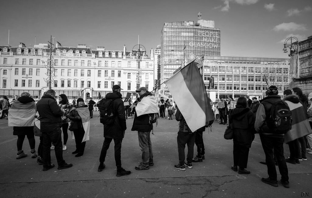 The square has been filled with pro-Palestine demonstrations many times since then. Here the site of memory allows each gathering to feel like an echo of famous demonstrations such as that of 1908 when hundreds of protestors entered the City Chambers singing ‘The Red Flag’ in protest against unemployment or one of the most famous episodes in the Red Clydeside history, the Battle for George Square in 1919, in which workers demonstrating to reduce the working week from 54 hours to 40 hours, were baton charged by the police. Over the last century the square has also hosted celebrations to mark the end of the second world war; independence rallies; numerous other demonstrations including those in support of Ukraine and disability and trans rights; and even Nelson Mandela who came to accept the freedom of the city in 1993. Of course, the square has also been used as a site of protest and celebration by TERFs, anti-vaxxers and the notorious Rangers FC fans and I do not wish to romanticise all forms of protest but nonetheless these were crowds of ‘ordinary’ people claiming the space as their own.