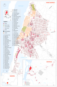 Through observations, mapping, surveys, archival research, and ethnographic readings of the Main-Market in the city (the largest site among 44 different market clusters in Onitsha) (see figure 1), it was apparent that markets in Onitsha reveal alternative ephemeral and non-linear forms of spatiality, which are shaped by the space-time cultural logic embedded in a contextual specificity of the Igbo ethnic nationality in Nigeria. In this paper, I argue for the need to recognize these forms of spatialities that reflect the organic mechanism of spatial productions across spatiotemporal scales, which are often devised by citizens as ways to cope and claim rights of access to the city. In this case, the ephemeral epitomizes an ontological permanence of spatial productions, amidst extreme otherness and uncertainty in the city. The second section of the paper introduces Onitsha markets in Nigeria. Sections three and four present a critique of permanence and linearities within the disciplines of architecture, urban design and planning in post-colonial Africa, respectively. The paper is concluded with arguments on the need to develop tools and frameworks that reflect the complexity of the local context, and towards livable urban growth.